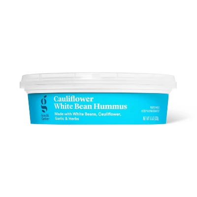 Delight your taste buds with a different take on a classic dip with this 10-Ounce Cauliflower Hummus from Good & Gather™. Made with white beans, cauliflower, garlic and herbs, this tasty hummus is made with no artificial colors or flavors. Great for dipping crackers, pretzels, veggies and more, it makes a perfect fridge staple for appetizer boards or everyday snacking.