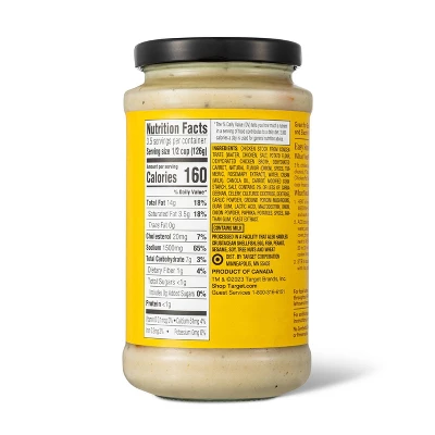 Warm up with the comfort of a homemade chicken dish featuring this Chicken Pot Pie Cooking Sauce from Good & Gather™. Made with chicken stock, heavy cream, carrots, onions, celery and potatoes, this thick, creamy sauce infuses flavor into your chicken recipes whether you prepare them on your stovetop or in your slow cooker or electric pressure cooker. Simple and quick to use, you’ll have a warm, hearty dish on the table in no time with this savory sauce, and all without artificial colors, flavors or preservatives.