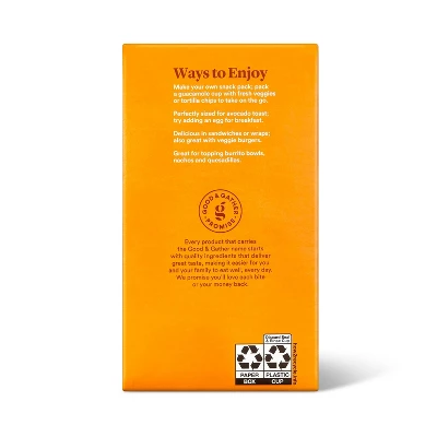 Liven up your lunch or taco night with Classic Guacamole Mini Cups from Good & Gather™. These mini guacamole cups are perfectly sized to provide an individual portion of guacamole that’s delicious for dipping veggies or chips or topping off a taco or burrito. The classic-style guacamole is a tasty blend of Hass avocados, onion and garlic, and it’s made with no artificial colors, flavors or preservatives. The pack includes six mini containers of guacamole so you have enough to get you through almost the whole week, or to give everyone in the family their own personal portion during Taco Tuesday.