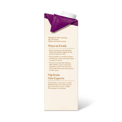 This Original Non-Dairy Oatmilk from Good & Gather™ is a non-dairy option you’ll love adding to any coffee drink or smoothie. This plant-based barista blend oatmilk provides top-notch frothing and is great in hot beverages. Plus, it’s gluten free and lactose free, which makes it ideal for special dietary needs. Whether you’re about to sit down to a simple breakfast cereal or crafting a homemade latte, you’ll love to experiment with the number of ways you can incorporate this smooth and creamy beverage into your drinks and meals.