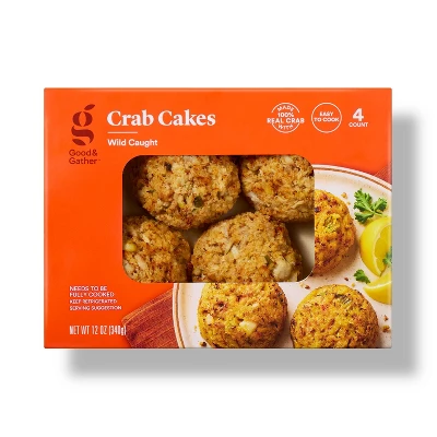With these 4-Count Crab Cakes from Good & Gather™ you can enjoy the taste of your favorite seafood restaurant any night of the week. Made with 100% real crab, these crab cakes are perfect as an easy appetizer for family hangouts or game day, and they can also be paired with an entree for an extra-special lunch or dinner. Wild caught and easy to cook, you’ll love the flavor and convenience of this pack of four crab cakes.