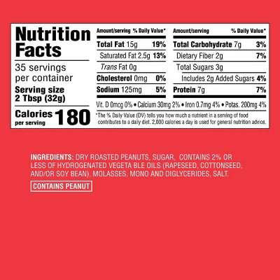Whip up a batch of your famous peanut butter cookies or give a boost to your post-workout smoothie with this Creamy Peanut Butter from Good & Gather™. This classic-style peanut butter is smooth and creamy for easy spreading and mixing. Pair with your favorite jelly and type of bread to make a personalized PB&J sandwich, or mix with chocolate spread and add to your oatmeal for a warm, decadent treat. Available in a 40-ounce size that’s perfect for the family, you’ll love the peanuty taste and creamy texture of this classic smooth peanut butter, as well as the 7 grams of protein this peanut butter provides in every serving.