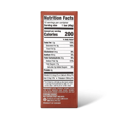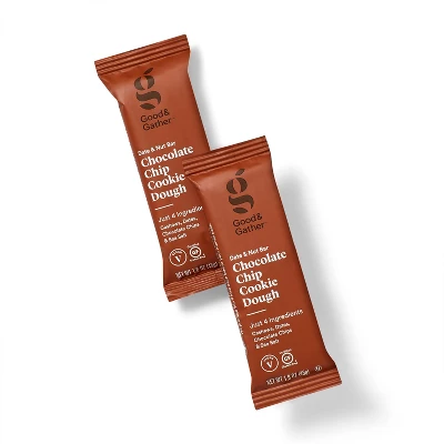 Take a tasty snack with you on the go when you take these 10-Count Date and Nut Chocolate Chip Cookie Dough Bars from Good & Gather™. These tasty snack bar+L3s are made with just four ingredients — dates, cashews, chocolate chips and sea salt — for a delicious, wholesome treat you’ll love. They’re gluten-free, vegan and kosher to accommodate a variety of diet preferences, and come with 10 bars in each pack so you can enjoy throughout the week. The rich cookie dough flavor is perfect for anytime of day, and is an excellent treat to enjoy on the go during a hike or commute.