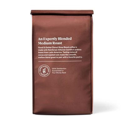 Start your day or reach for an afternoon pick-me-up with a cup of Donut Shop Blend Medium Roast Ground Coffee from Good & Gather™. Made with Fair Trade Certified™ Arabica beans from Latin America, this medium roast coffee features cocoa and roasted nut notes with a smooth finish to create a delightful cup of joe you’re sure to love. Conveniently suited for all drip-style, regular coffee brewers or your preferred method of coffee brewing, you can enjoy this donut shop blend ground coffee hot or poured over ice. Sip it as is for a rich, robust taste, or add sugar and your favorite creamer for extra body and to enhance the flavor profile. This medium roast coffee makes a delicious pick-me-up on its own, or as a tasty companion to a biscotti or a sweet breakfast like waffles or pastries.