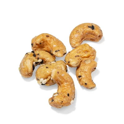 Find your new favorite snack in the Everything Seasoned Cashews from Good & Gather™. The satisfyingly creamy-buttery flavor of cashews takes a hint from your favorite bagel, combining to create a singular snack you’ll never want to put down. Munch these savory everything cashews straight out of the pouch when you need a quick bite, then stash the resealable container in your desk drawer or pantry in wait of your next snack attack. Want to shake things up even more? Try creating your own party mix with salted almonds, mini bagel chips and pretzels — just be sure you have enough to refill the bowl!