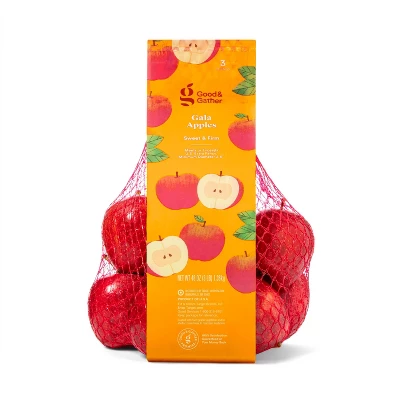 Whether you’re packing lunches for the kids or simply looking to stock up on an easy afternoon pick-me-up, a three-pound bag of Gala Apples from Good & Gather™ makes the perfect choice for you and your family. With a delectably sweet flavor and firm texture, these gala apples make for a satisfying snack whether you enjoy them on their own or with yogurt or caramel dip. Each bag contains three pounds of apples with a minimum diameter of 2.5 inches, and the apples meet or exceed U.S. Extra Fancy grade standards, making this bag of gala apples a true crowd pleaser.