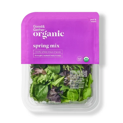 Whether you’re preparing a Cobb salad to accompany your grilled steak dinner or putting together a quick mix of veggies for a convenient work lunch, you’ll love adding Organic Spring Mix from Good & Gather™ to your refrigerator. This non-GMO spring mix is certified USDA Organic, and it’s thoroughly washed for easy meal prep — you can eat and serve it right away. The tender mix of baby lettuces and greens easily adds a savory richness to your favorite salads; plus, it provides a good source of vitamin A and folate. Serve alongside homemade pizza with a simple balsamic vinaigrette, or mix with other lettuce blends for a salad full of depth and texture.
