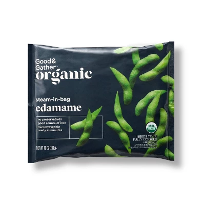 Frozen Organic Edamame from Good & Gather™ makes a great pick whether you’re making appetizers for a get-together or looking for an easy side dish for an everyday meal. This edamame has been frozen without preservatives for fresh taste, and it’s a good source of iron, making it a great addition to your table. Plus, it’s certified organic. The bagged edamame is microwaveable, letting you get it served up in minutes. Enjoy the edamame on its own with a sprinkling of sea salt for a simple yet tasty snack, or turn it into a salad with corn, cherry tomatoes and cauliflower rice.