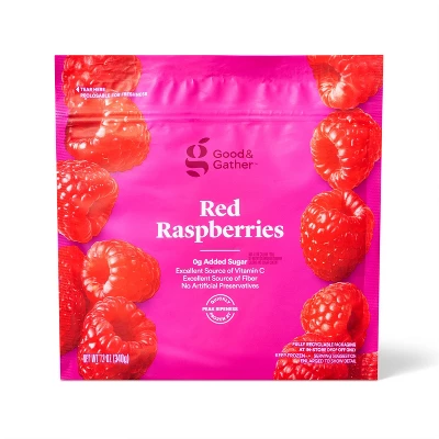 These Frozen Red Raspberries from Good & Gather™ are a handy option for smoothies and juices. An excellent source of fiber and Vitamin C, these frozen red raspberries have no added sugar* or artificial preservatives. Mix them with your favorite fresh or frozen fruits and veggies for a refreshing and delicious smoothie anytime.