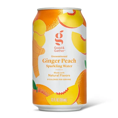 Treat yourself to an invigorating refreshment with the Ginger Peach Sparkling Water from Good & Gather™. Each can in this eight-pack contains a delicious taste of peach and zesty ginger, giving you a mouthwatering delight to enjoy anytime you’re looking for a beverage. Unsweetened and made with natural flavors, this ginger-peach carbonated water also contains zero calories, making it the perfect way to relish in a fizzy, satisfying drink. With eight cans, you can add one to your lunch for work or school, take to a picnic on a hot day or combine with other flavored sparkling water packs for guests to enjoy a cool drink at a party. You can even create a family-friendly punch or mocktail by mixing this ginger-peach fizzy water with fresh mint leaves and a splash of lemon.