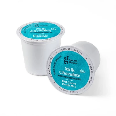 Enjoy quick, tasty hot cocoa all winter long with this Milk Chocolate Hot Cocoa Drink Mix from Good & Gather™. This box contains 24 single-serve hot cocoa cups, each filled with delicious powdered cocoa mix. This mix is naturally flavored with other natural flavors — no artificial flavors or sweeteners whatsoever — so you can feel good about serving it to yourself or your kids. Designed for use with Keurig single-serve brewing systems, you can enjoy the hot cocoa as-is, or top it with whipped cream and chocolate shavings for an extra-decadent treat.
