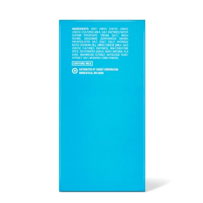These 6-Count Mushroom Swiss Beef Patties from Good & Gather™ make a perfect pick for backyard cookouts or busy weeknights. These beef patties are made with mushrooms and Swiss cheese for an elevated take on classic burgers. Simply cook the patties from frozen, then add buns and your favorite toppings for a quick, easy and crowd-pleasing meal.