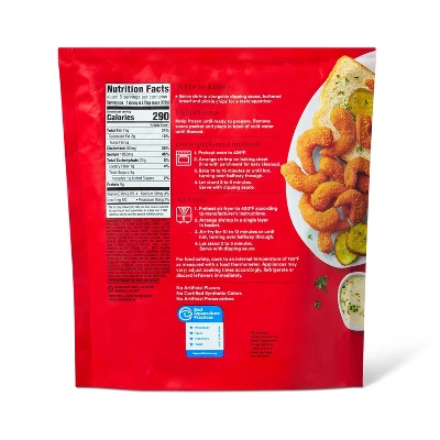 This Frozen Nashville Hot Seasoned Breaded Shrimp from Good & Gather™ lets you enjoy great-tasting seafood you can feel good about. This Nashville hot seasoned breaded shrimp contains no artificial flavors or preservatives and no synthetic colors and is farm raised and certified sustainable. A great alternative to hot wings, you’ll love the versatile ways you can enjoy this shrimp — and don’t forget the included ranch sauce for dipping.
