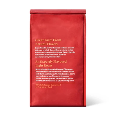 Settle in with the rich and inviting taste of this Cinnamon Bun Bagged Coffee from Good & Gather™. Made with Fair Trade Certified Arabica beans, this light-roast ground coffee offers a uniquely flavorful cup of joe you can enjoy anytime, either hot or poured over ice.