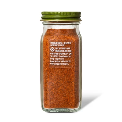 Spice up your life with this Organic Cayenne Pepper from Good & Gather™. Cayenne pepper offers a bold kick that’s perfect for adding a little heat to meats and fish, sprinkling on tacos or eggs for an extra punch or using as a base for spicy dry rubs to make mouth-watering wings or ribs. This ground cayenne pepper is USDA organic and is sure to add the spice and color you need in all your recipes.