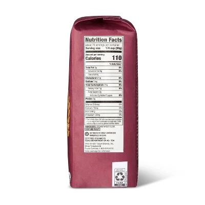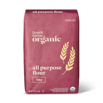Be ready for any baking endeavor — from cakes and cookies to waffles and breads — when you have a five-pound bag of Organic All-Purpose Flour from Good & Gather™ Organic in your pantry. This all-purpose flour is sure to quickly become a staple in your baking arsenal. It’s Certified USDA Organic, like all organic flours this product does not contain GMOs and has undergone no bleaching so you can feel great about using it in all your favorite recipes. Keep this bag of organic flour stored in an airtight container in a cool, dry place to maintain its freshness from use to use.