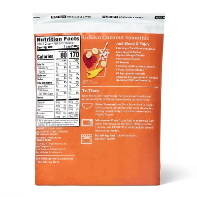 Start your morning on a sweet note with a package of Organic Frozen Mango Chunks from Good and Gather™. An excellent source of vitamin C, this frozen organic mango has all the vibrant flavor you expect, with no added sugar*. The 10-ounce size makes it easy to keep this tasty fruit on hand and ready to use, and the reclosable bag helps keep it tasting its best. Blend it up with lime juice, ginger, lemonade and ice for a bright and delicious homemade slushy, or mix it with a banana, spinach and vanilla almond milk for a satisfying breakfast smoothie.