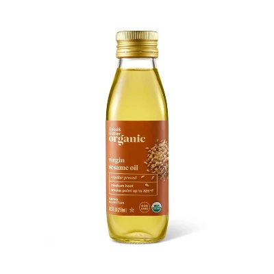 Add a hint of sweet, nutty flavor to a variety of dishes when you add Good & Gather™ Virgin Sesame Oil to your kitchen pantry. This USDA Organic, expeller-pressed virgin sesame oil offers a more neutral taste than toasted sesame oil, making it a great addition to your favorite marinades, or a tasty finishing touch when you drizzle it on top of soups or stir frys. With a medium smoke point of 325F degrees, you can also use it in place of other cooking oils for sauteing and baking. Try whisking it into a vinaigrette to upgrade your go-to simple dressing with a nutty, bright flavor you’ll love.