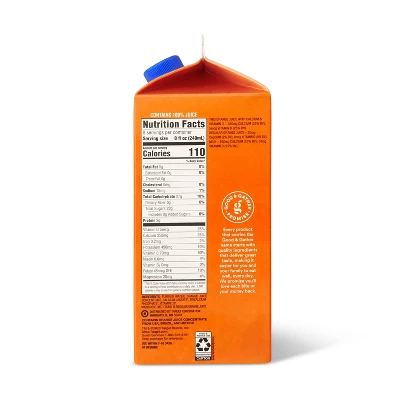 Start your day off on the right note or enjoy a refreshing drink during the day with the Pulp-Free 100% Orange Juice from Concentrate with Calcium & Vitamin D from Good & Gather™. This premium 100% orange juice has no preservatives, artificial flavors or colors to ensure you get the most deliciously fresh taste with every sip. There’s no pulp for a smooth texture that’s easy to drink, along with no added water so you get the perfect punch of orange goodness in each glass you pour. Complete with calcium and vitamin D* as well as being an excellent source of vitamin C, this pasteurized orange juice is a must-have pick for the selection of beverages in your fridge — simply shake well and enjoy for great citrus flavor.