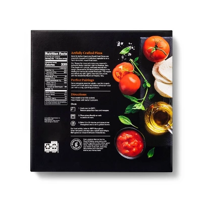 The Signature Wood-Fired Margherita Frozen Pizza from Good & Gather™ makes it easy to elevate your at-home pizza game. On a delectable wood-fired crust, this pizza is topped with crushed tomato sauce, grilled tomatoes, basil and mozzarella cheese. The pizza comes frozen for easy preparation, and it’s made with no artificial flavors or preservatives. Enjoy it on its own for a satisfying lunch or supper, or serve with prosecco and an arugula salad for a shared dining experience that’s sure to please.