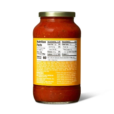 - *Each 1/2 cup serving of sauce provides 3/4 cup of vegetables (30% daily recommendation). The USDA Dietary Guidelines 2015-2020 recommends a daily intake of 2 1/2 cups of vegetables for a 2,000 calorie diet.