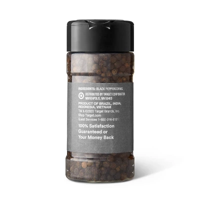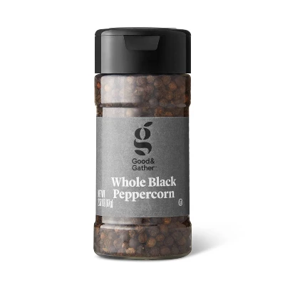 Make sure you always have your essential seasonings on hand for all of your cooking needs by adding these Whole Black Peppercorns from Good & Gather™ to your pantry. Easily add a rich and flavorful peppery taste to pasta, salads, meats and more by cracking black peppercorns for a more authentic taste. Whether you’re whipping something up from scratch or looking to add a little flavor to a frozen dish, this black peppercorn is a great seasoning staple to always have stocked and ready to use in your spice collection.